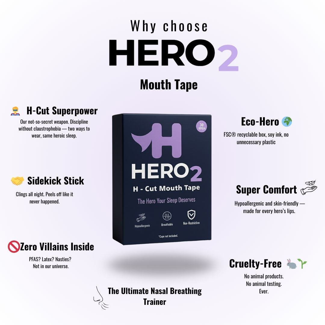 Hero2 gently encourages nasal breathing without creating a full, “sealed shut” feeling, which can feel less claustrophobic than tapes that completely cover the mouth.​